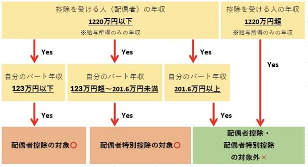 配偶者控除・配偶者特別控除の対象となるかどうかは、控除を受ける扶養者と自分自身の年収で確認することができます。