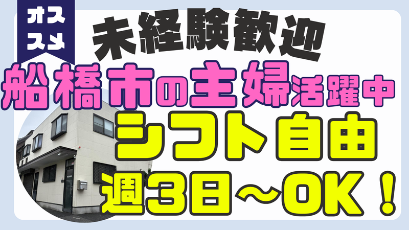 バイトTOParrow_bread_crumb千葉県arrow_bread_crumb船橋市arrow_bread_crumb製造・工場arrow_bread_crumb時間や曜日が選べる・シフト自由のアルバイト・バイト・求人