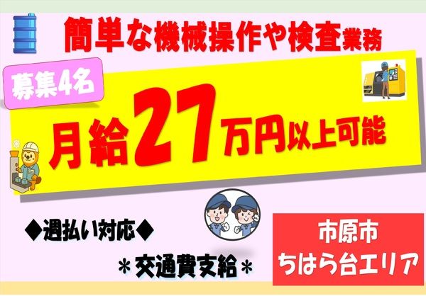 千葉県、市原市、その他製造・生産、早朝・朝の仕事の派遣社員求人情報