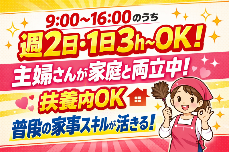 バイトTOParrow_bread_crumb千葉県arrow_bread_crumb家事代行arrow_bread_crumb週2・3日からOKのアルバイト・バイト・求人