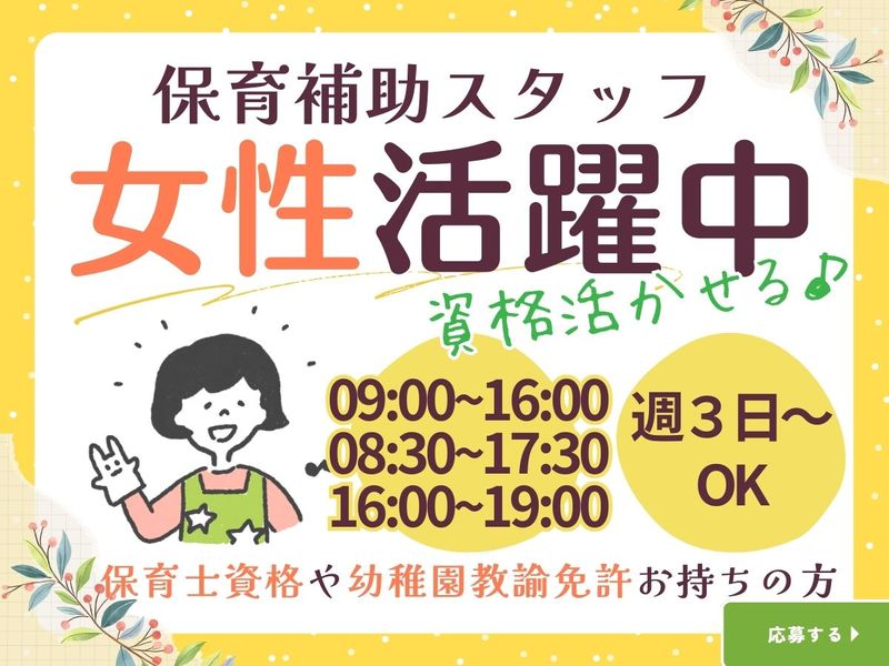 福井県、保育補助・学童、ブランクOKの派遣社員求人情報