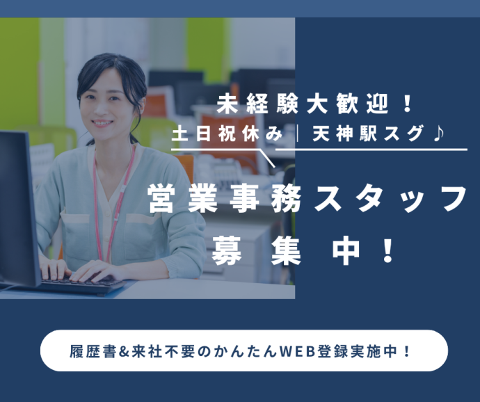 福岡県、営業事務、副業・WワークOKの派遣社員求人情報