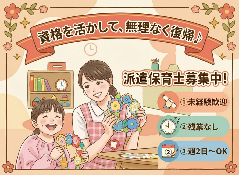 福岡県、保育士・教員・講師、長期休暇ありの派遣社員求人情報