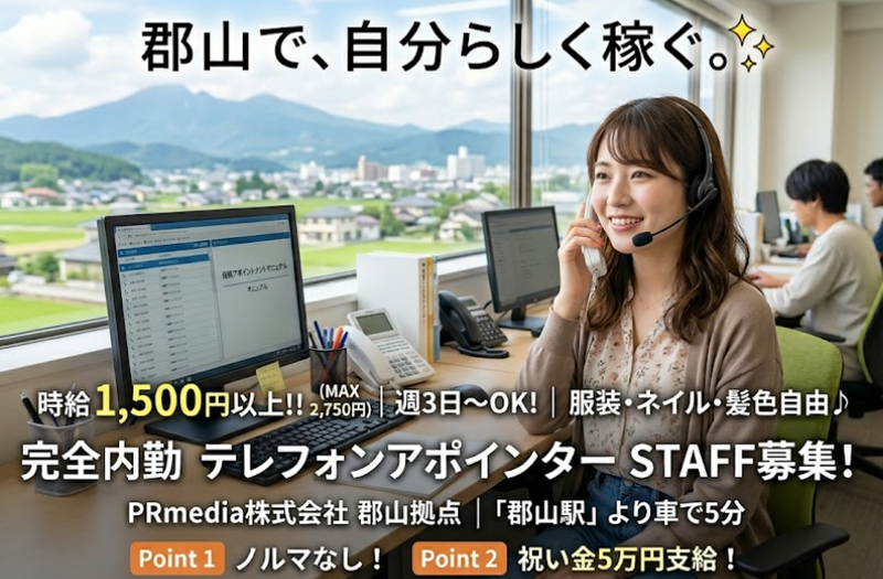 バイトTOParrow_bread_crumb福島県arrow_bread_crumb郡山市arrow_bread_crumb髪型・髪色自由のアルバイト・バイト・求人