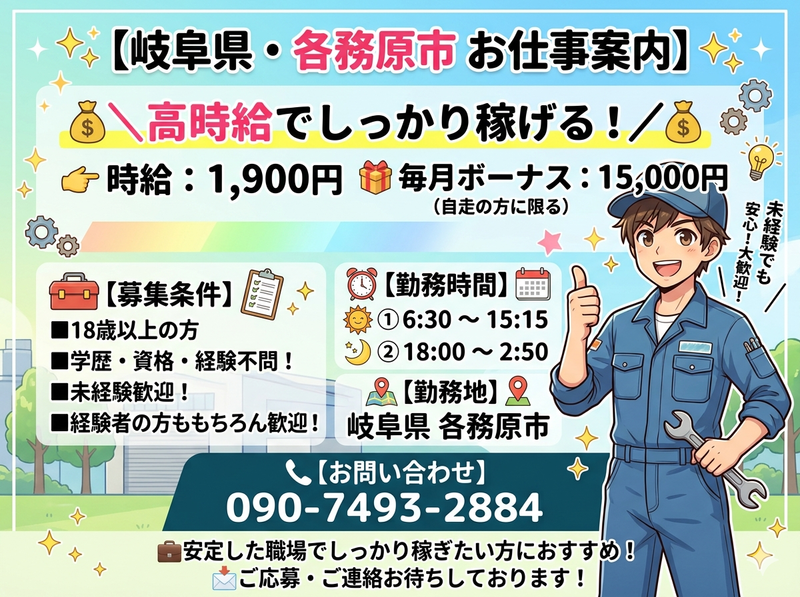 岐阜県、各務原市、ひげOKのアルバイト・バイト求人情報