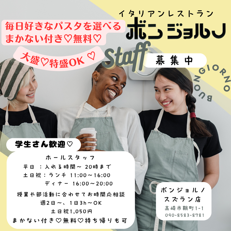 バイトTOParrow_bread_crumb群馬県arrow_bread_crumb高崎市arrow_bread_crumb営業・販売arrow_bread_crumbまかない・食事補助ありのアルバイト・バイト・求人