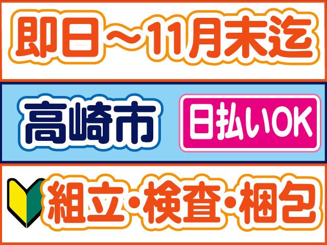 群馬県、高崎市、梱包、日払いOKのアルバイト・バイト求人情報