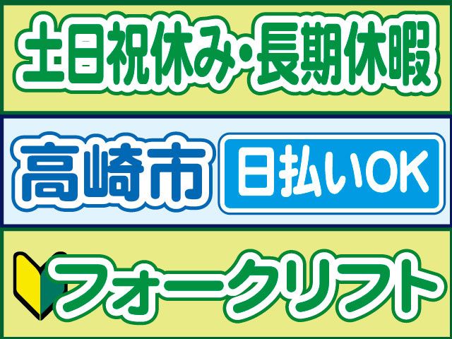 群馬県、フォークリフト、未経験・初心者OKのアルバイト・バイト求人情報