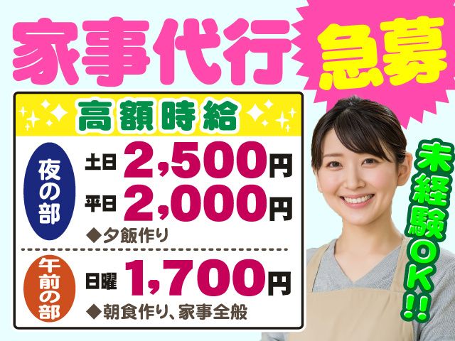 群馬県、家事代行、時間や曜日が選べる・シフト自由のアルバイト・バイト求人情報