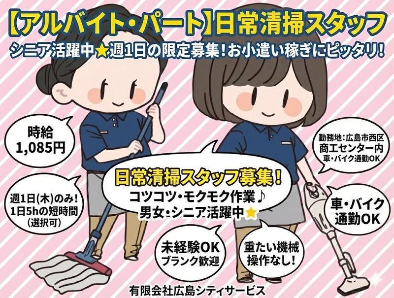 広島県、広島市、清掃・美化、家庭都合休OKのアルバイト・バイト求人情報