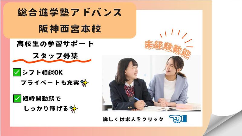 バイトTOParrow_bread_crumb兵庫県arrow_bread_crumb西宮市arrow_bread_crumb保育士・教員・講師arrow_bread_crumb副業・WワークOKのアルバイト・バイト・求人