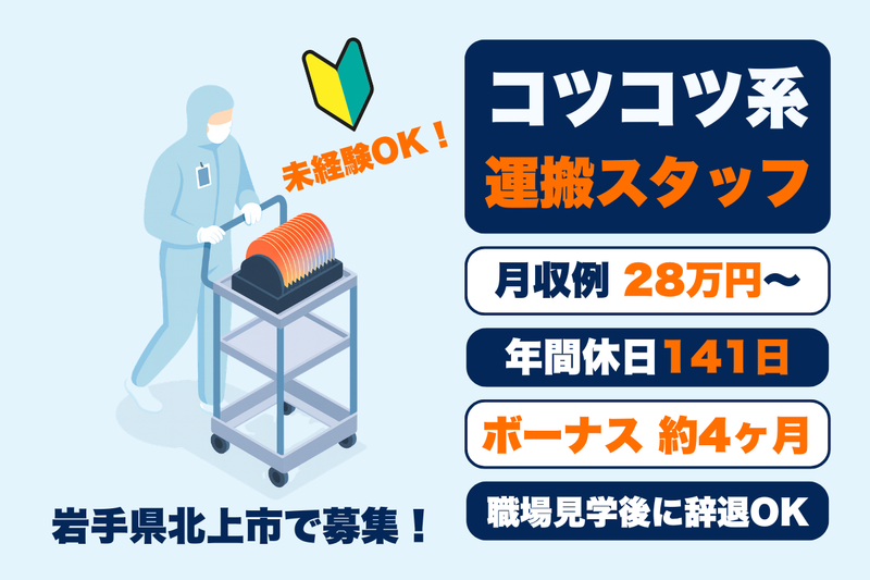 岩手県、製造・工場、昼の仕事の正社員求人情報