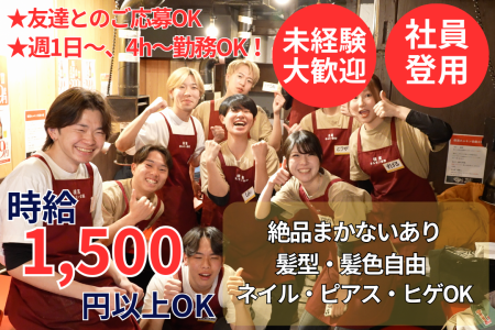 神奈川県、横浜市、ホールスタッフ、まかない・食事補助ありのアルバイト・パート求人情報