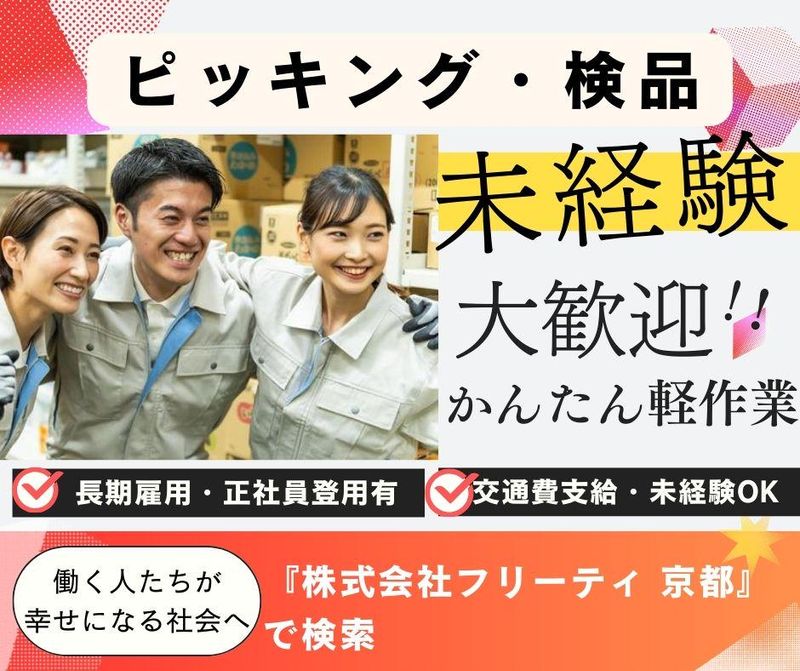 京都府、倉庫・物流管理、髪型・髪色自由の派遣社員求人情報