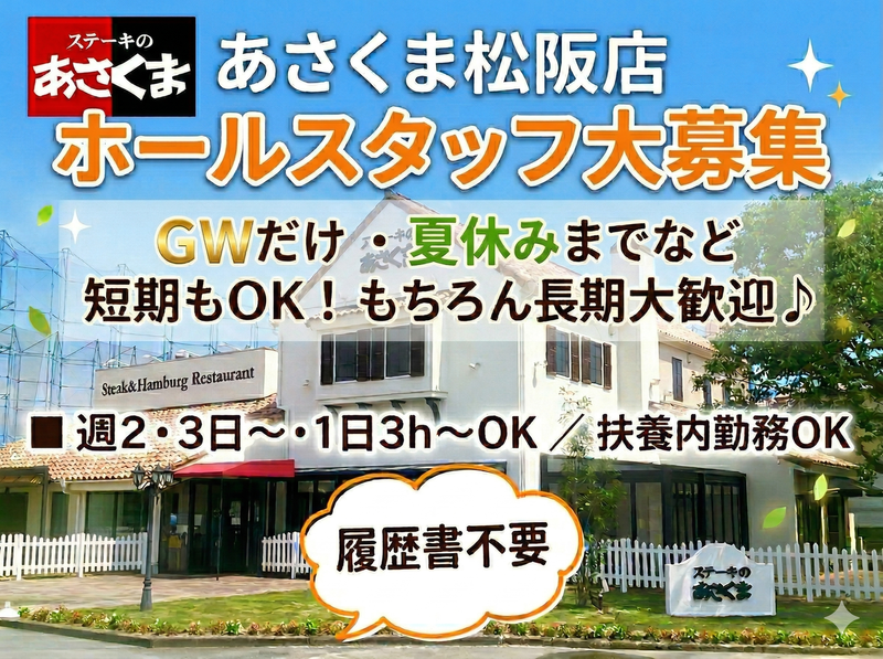 三重県、松阪市、飲食・フードサービス、社会保険ありのアルバイト・バイト求人情報