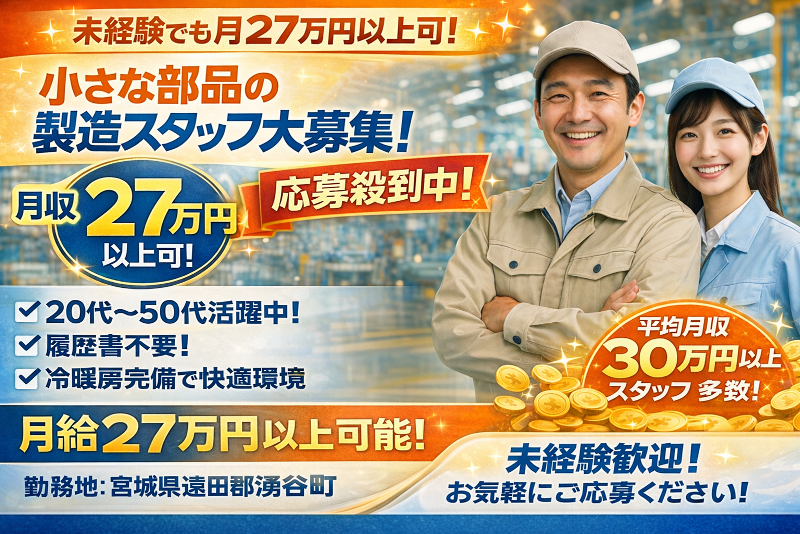 宮城県、製造・工場、バイク通勤OKの派遣社員求人情報