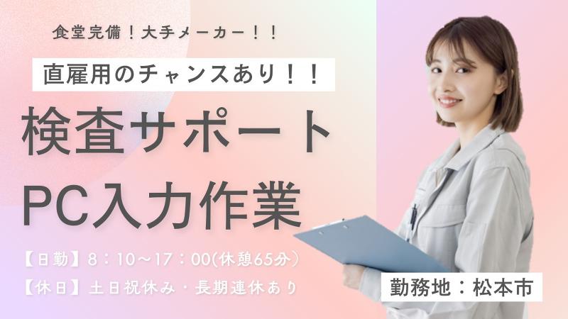 長野県、データ入力・PC入力、昼の仕事のアルバイト・バイト求人情報