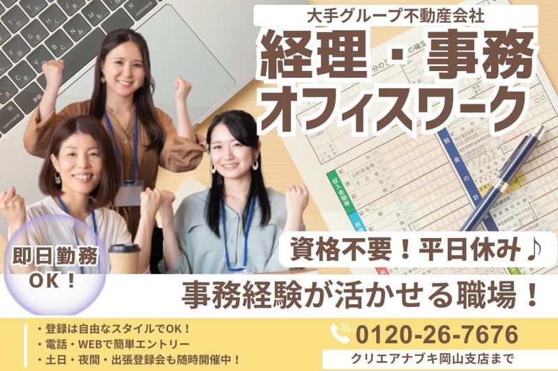 岡山県、金融・財務・会計、服装自由の派遣社員求人情報