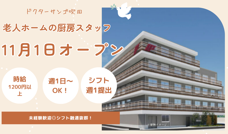 大阪府、吹田市、ホールスタッフ、週1日からOKのアルバイト・パート求人情報