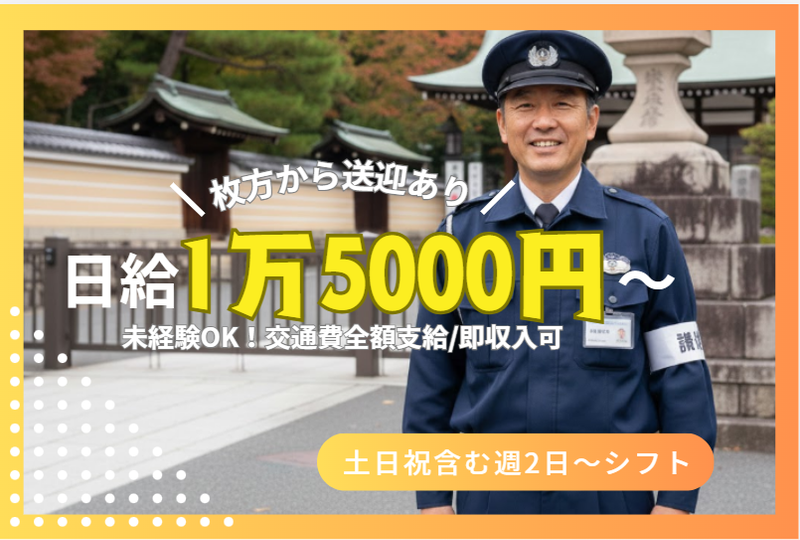 大阪府、枚方市駅、警備・保安、友達と応募OKのアルバイト・バイト求人情報