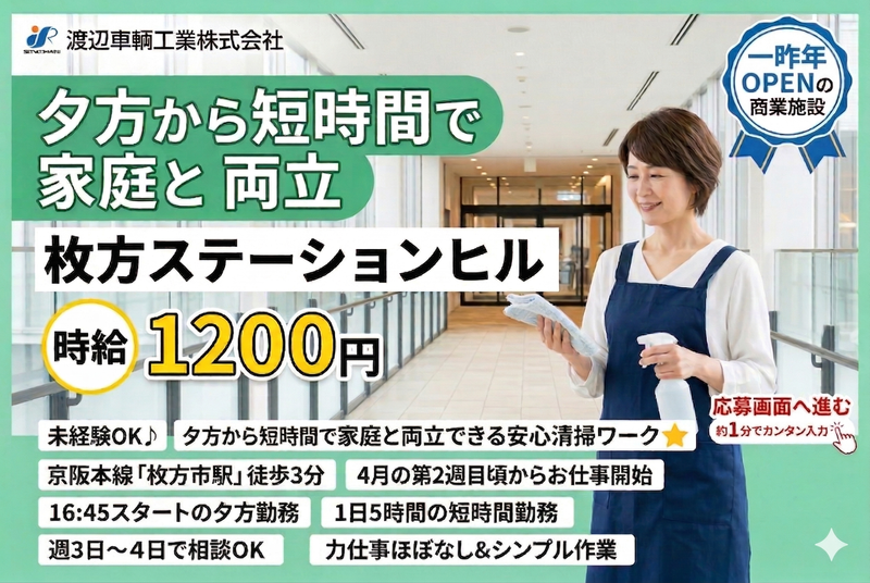 大阪府、枚方市駅、清掃・美化のアルバイト・バイト求人情報