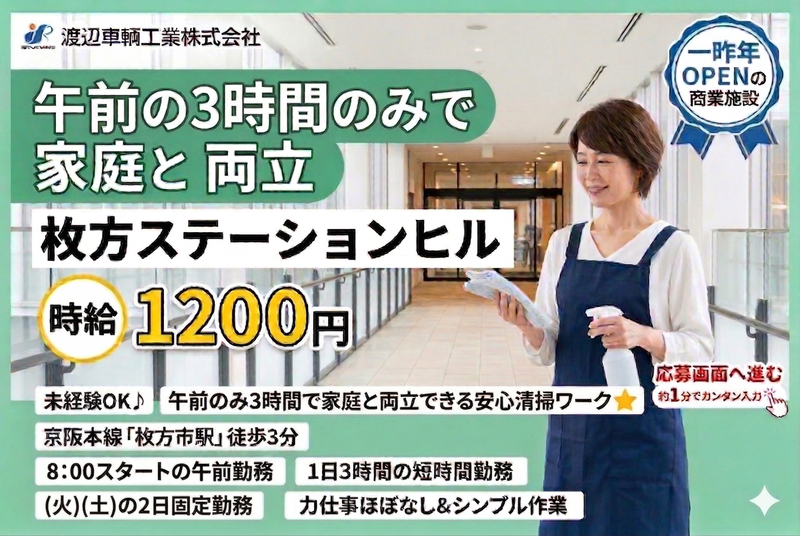 大阪府、枚方市駅、時間や曜日が選べる・シフト自由のアルバイト・バイト求人情報