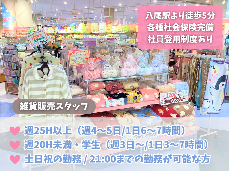 バイトTOParrow_bread_crumb大阪府arrow_bread_crumb八尾市arrow_bread_crumb近鉄八尾駅arrow_bread_crumb時間や曜日が選べる・シフト自由のアルバイト・バイト・求人