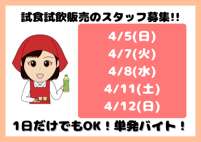 バイトTOParrow_bread_crumb大阪府arrow_bread_crumb営業・販売arrow_bread_crumb単発・1日OKarrow_bread_crumbアルバイト・パートの求人