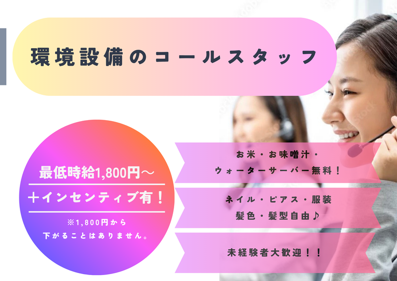 大阪府、コールセンター・テレオペ、まかない・食事補助ありのアルバイト・バイト求人情報