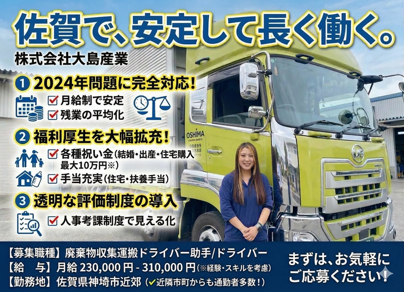 佐賀県、大型トラックの正社員求人情報