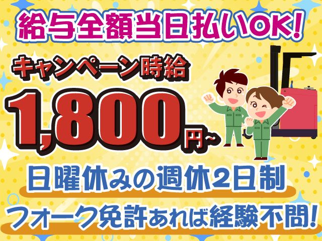 埼玉県、所沢市、フォークリフト、シフト制の派遣社員求人情報