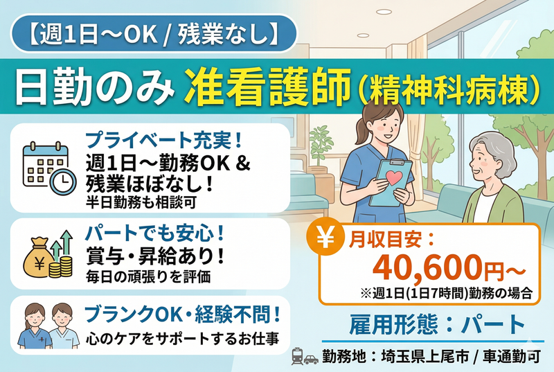 埼玉県、上尾市、医療・看護師・薬剤師、即日勤務OKのアルバイト・バイト求人情報