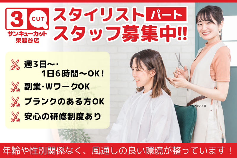 埼玉県、越谷市、ビューティー・生活サービス、副業・WワークOKの正社員求人情報