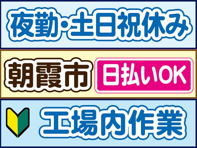 バイトTOParrow_bread_crumb埼玉県arrow_bread_crumb朝霞市arrow_bread_crumb製造・工場arrow_bread_crumb即日勤務OKのアルバイト・バイト・求人