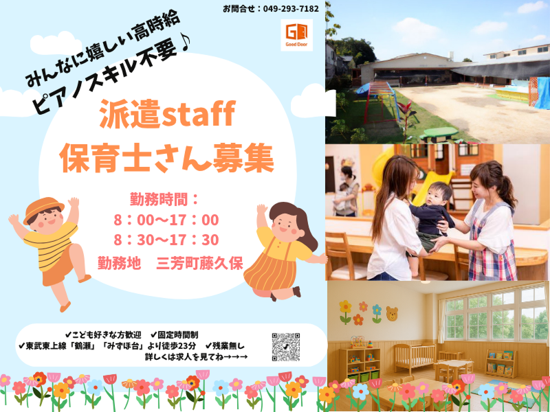 埼玉県、保育士・教員・講師、固定時間・固定シフト制の派遣社員求人情報