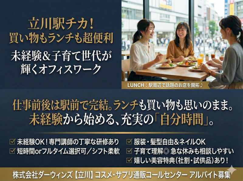 東京都、立川市、家庭都合休OKのアルバイト・バイト求人情報