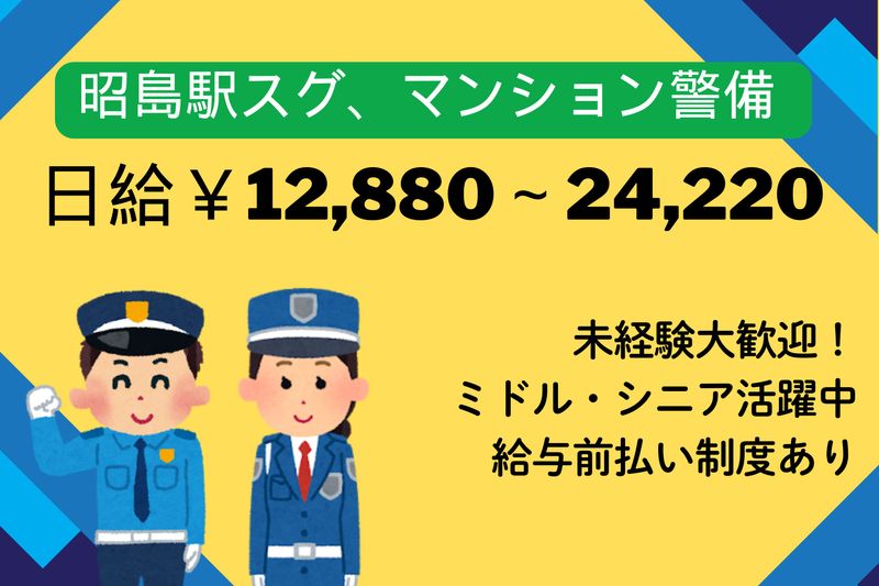 東京都、昭島市、警備・保安、履歴書不要のアルバイト・バイト求人情報