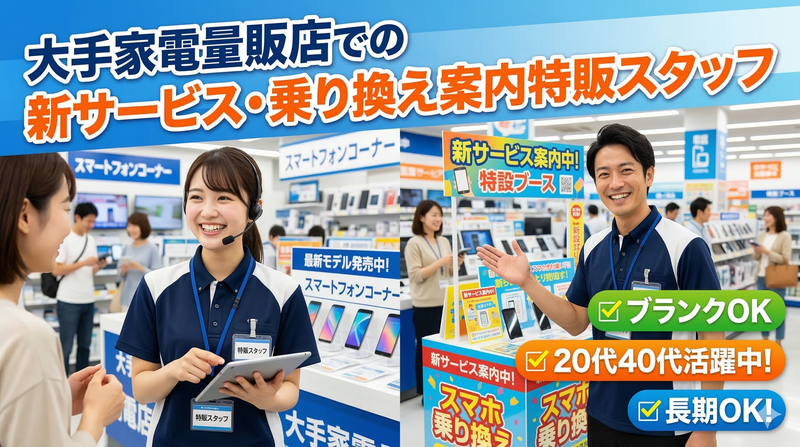 東京都、家電量販店・携帯販売(携帯ショップ)の派遣社員求人情報