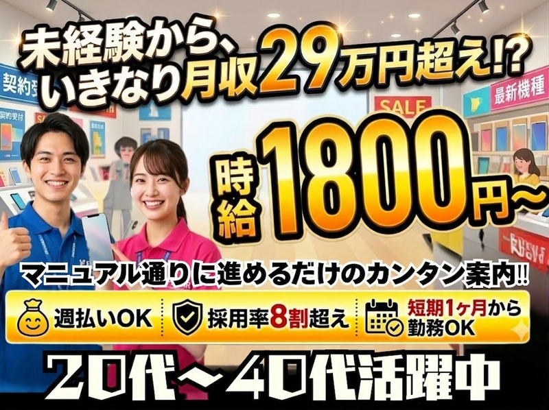 バイトTOParrow_bread_crumb東京都arrow_bread_crumb家電量販店・携帯販売(携帯ショップ)arrow_bread_crumbオープニングスタッフのアルバイト・バイト・求人