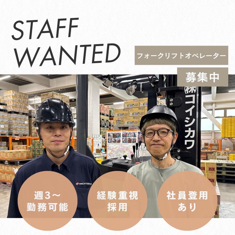 バイトTOParrow_bread_crumb東京都arrow_bread_crumbフォークリフトarrow_bread_crumb週2・3日からOKのアルバイト・バイト・求人