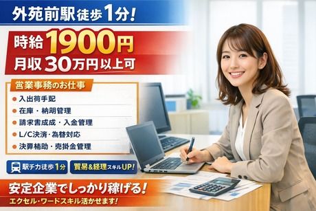 東京都、営業事務、給料前払いOKのアルバイト・バイト求人情報