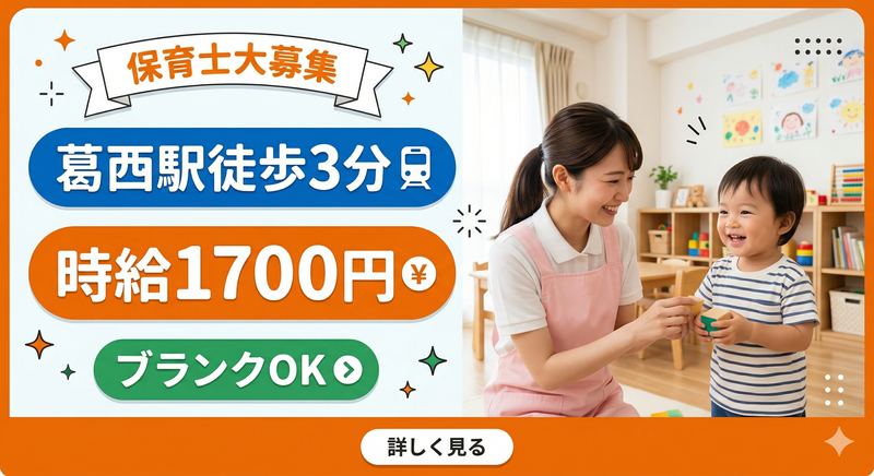 バイトTOParrow_bread_crumb東京都arrow_bread_crumb保育士・幼稚園教諭arrow_bread_crumb駅チカ・駅ナカのアルバイト・バイト・求人