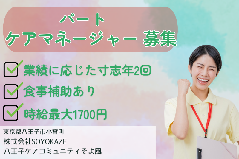 バイトTOParrow_bread_crumb東京都arrow_bread_crumbケアマネジャー(介護支援専門員)arrow_bread_crumb社員登用ありのアルバイト・バイト・求人