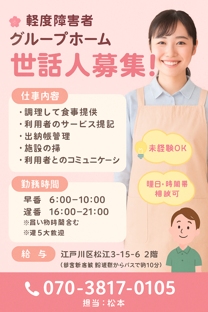 バイトTOParrow_bread_crumb東京都arrow_bread_crumb介護・福祉arrow_bread_crumb平日のみOKarrow_bread_crumbアルバイト・パートの求人