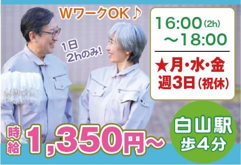東京都、清掃員・掃除、夕方からの仕事のアルバイト・バイト求人情報