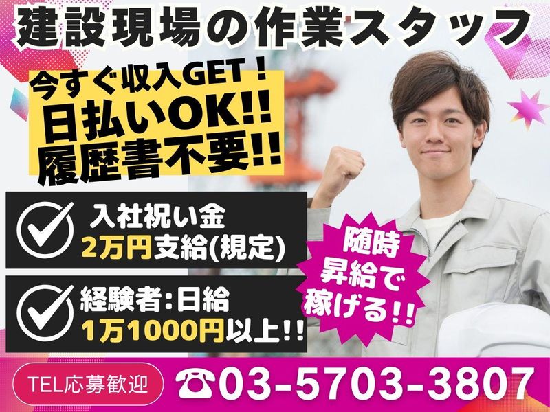 東京都、施工管理・現場監督、日払いOKのアルバイト・バイト求人情報