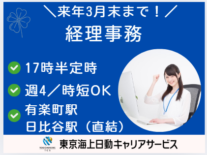 バイトTOParrow_bread_crumb東京都arrow_bread_crumbその他経理・会計arrow_bread_crumb家庭都合休OKのアルバイト・バイト・求人
