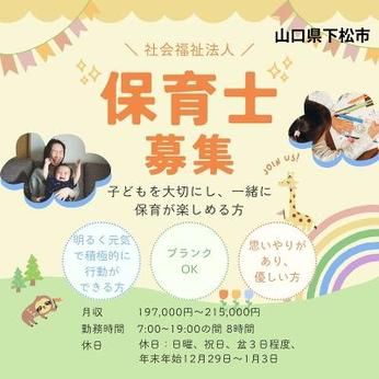 山口県、下松市、保育士・教員・講師、寮・社宅・住宅手当ありのアルバイト・バイト求人情報