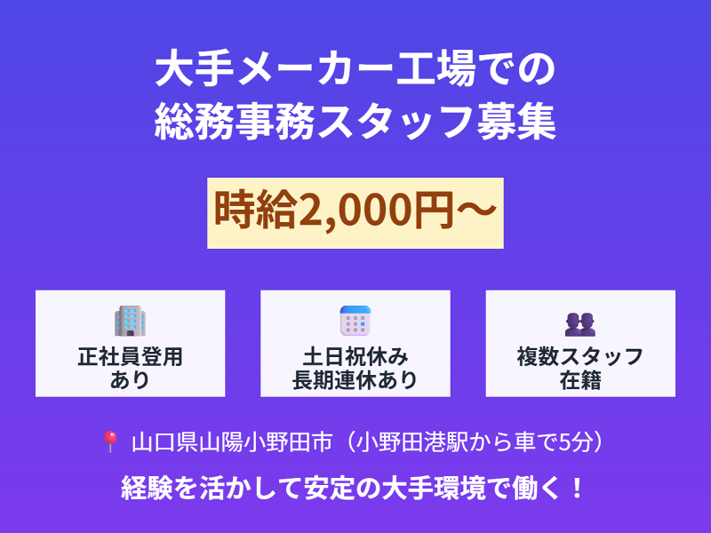 山口県、経営・事業企画・人事・事務、社員登用ありの派遣社員求人情報