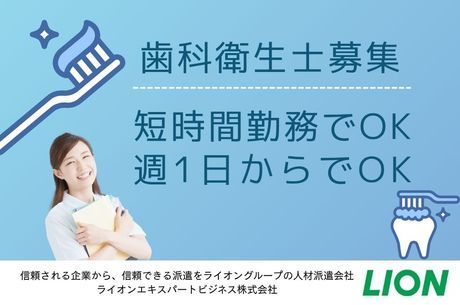 ライオングループの歯科派遣求人★週1日~午後3時間もOK!★柔軟シフト&時給2,000円で収入アップ